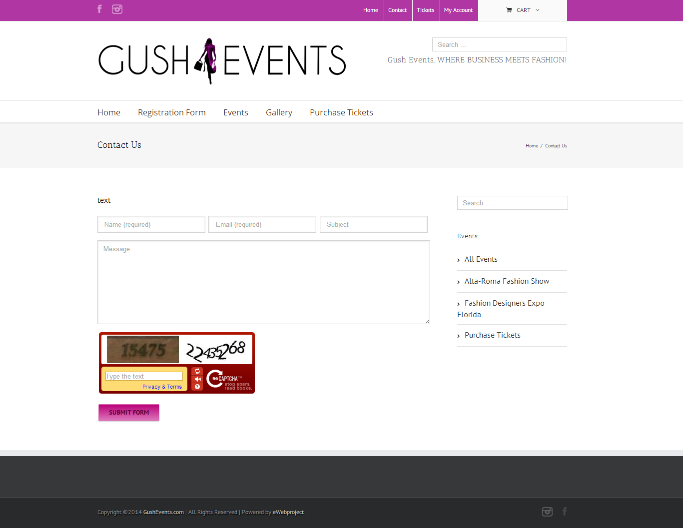 Events Ecommerce Website Design