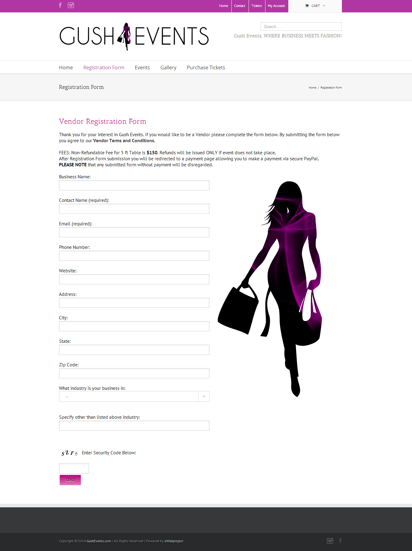 GushEvents.com – Vendors & Ticket selling website design